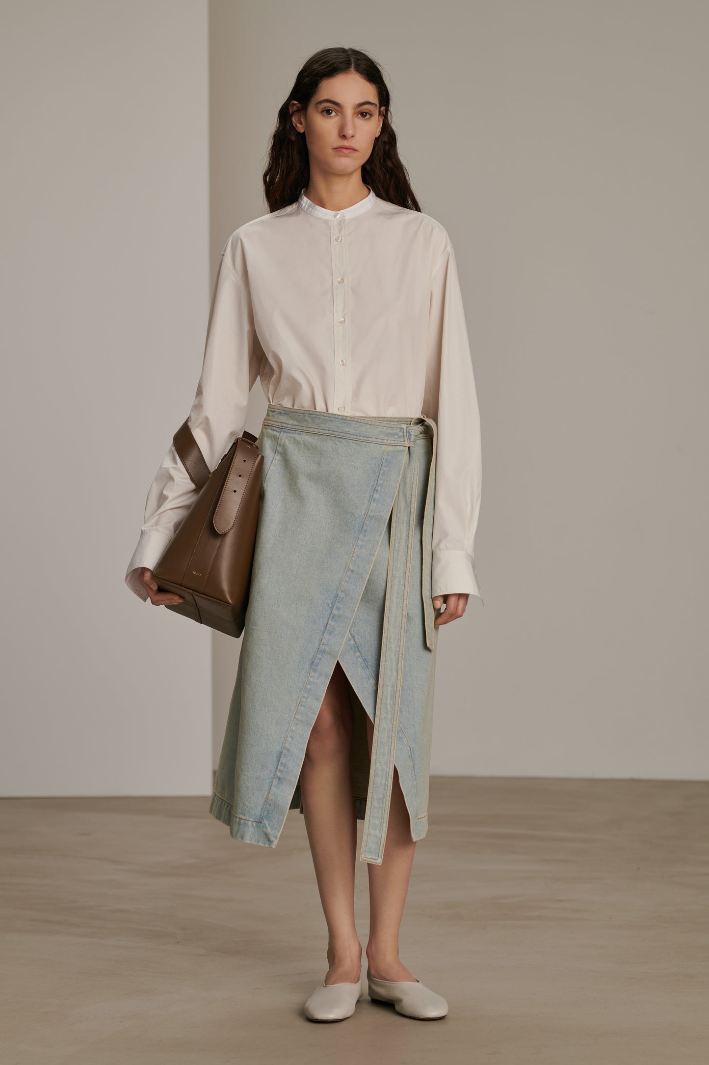 BLONDIE is a wrap denim skirt. Its elegant mid-calf length cut enhances the silhouette while providing comfortable freedom of movement.